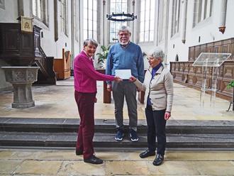 „Diese Spende zeigt einmal mehr die Verbundenheit der Ev. Frauenhilfe mit der Kirchengemeinde und dem Förderverein Christuskirche Andernach“, sagte Volker Stähle, 1. Vorsitzender des Fördervereins, „dieses Geld wird wie immer für den Erhalt und die Sanierung der Kirche verwendet.“