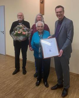 v.li.: Gerhard Schlich, Karin Haffke, Hilde Schmitz, Pfarrer Norbert Missong