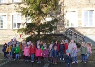 NICKENICH. Am Freitag, 25.11., machten sich alle Kinder und Erzieherinnen der Kita Lavazwerge auf den Weg zum Rathaus. Hier wurde der große Tannenbaum der Gemeinde von vielen fleißigen Kinderhänden mit selbstgebastelten Weihnachtsdekorationen geschmückt, welche in der Woche zuvor von den Kindern liebevoll gestaltet wurde.