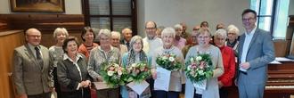 Anschließend erfolgte die Ehrung verdienter Chormitglieder: Hedi Laux für 10 Jahre, Inge Lohner-Wirz für 25 Jahre, Irmhild Funk für 45 Jahre Singen im Chor, und Hedwig Breitbach konnte sogar Rückschau auf 70 Jahre halten.