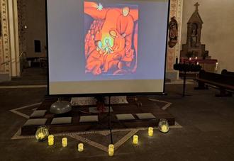 Mitglieder des Pfarrgemeinderates Nickenich unter der Leitung von Horst Schmitz luden am Hochfest der Gottesmutter Maria in die Pfarrkirche Sankt Arnulf im Rahmen der 24 Adventsfenster ein. Zur musikalischen Gestaltung hatte der Pfarrgemeinderat das Männerquartett Creftensis der Pfarreiengemeinschaft Kruft-Nickenich angefragt. Das Männerquartett besteht aus den Sängern Achim Mader, Bernhard Treins, Lothar Schmitz und Gerhard Schlich, der auch Orgelimprovisationen spielte. Die stellvertretende Pfarrgemeinderatsvorsitzende Monika Leinz trug zusammen mit Elisabeth Schmitz ansprechende Texte vor. Frau Leinz hatte von der Künstlerin Beate Heinen unentgeltlich die Genehmigung erhalten, eines ihrer Werke, das zu den Texten passte, präsentieren zu dürfen. Im Anschluss an diese Impulse luden die Pfarrgemeinderatsmitglieder zum Verweilen bei Gespräch und Imbiss ein.