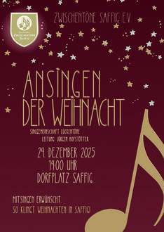 Der Gesangsverein Zwischentöne Saffig e. V. lädt herzlich zum traditionellen Ansingen der Weihnacht am 24.12.2025 um 14:00 Uhr in Saffig ein.