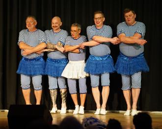 Mit einer bunten Mischung aus Tanz, Büttenrede, Sketch und Gesang begeisterten die Aktiven den Saal. Auch in diesem Jahr wieder auf der Bühne mit dabei: Heike Pinhammer & Martina Over als Sportmuffel, die „Trockenschwimmer“ mit Ballett, „Dirty Dancing“ und Gardetanz und Heike Schmitz & Doris Wind mit einer Lektion in Sachen Flirten.
