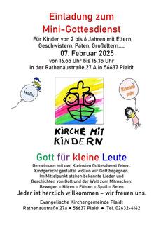 Mini-Gottesdienst: 7.2. um 16:00 Uhr