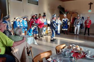 Für das leibliche Wohl wurde zunächst für „alle“ Gekommenen Kaffee und Kuchen gereicht und das ein und andere Gläschen Sekt getrunken während der Musikus Aaron Röder die Gesellschaft mit karnevalistischen Liedern befeuerte.