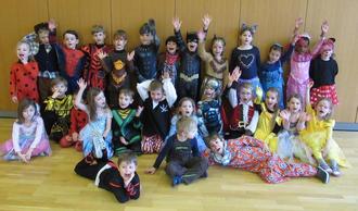 Am Dienstagvormittag haben sich die Schukis der beiden Nickenicher Kitas kostümiert im Spiegelsaal getroffen und gemeinsam gespielt, getanzt und gesungen.