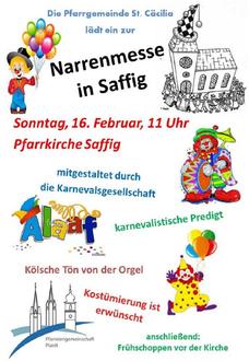 Am Sonntag, 16. Februar um 11:00 Uhr findet in der Pfarrkirche die Saffiger Narrenmesse statt.
