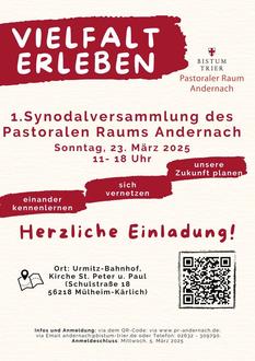 Um die Interessen jedes einzelnen Gläubigen aus diesem großen Raum zu erreichen und Einfluss auf die Arbeit bzw. Ausrichtung des Pastoralen Raumes zu haben gibt es zukünftig jährlich eine Synodalversammlung. Hierzu ist jeder eingeladen der sich mit einbringen möchte.