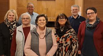 Mitglieder des Pfarrgemeinderates und des Firmvorbereitungsteams trafen sich zum Informationsaustausch. Von links: Kirsten Baier, Monika Bermel, Lothar Schmitz, Monika Leinz, Anke Heinz, Pfarrgemeinderatsvorsitzender Wolfgang Weber und Firmverantwortliche der Pfarreiengemeinschaft Steffi Kennert und der Fotograf Pfarrer Norbert Missong.