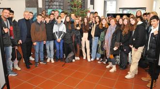 Bürgermeister Claus Peitz (3. Von links) begrüßte die deutsch-französische Schülergruppe im Historischen Rathaus.