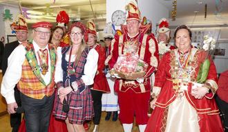 Mit Musik wurde die Stimmung ab 14:30 Uhr bei Kaffee und frischen Berlinern aufgewärmt. Pünktlich zur närrischen Zeit um 15:11 Uhr gaben sich seine Tollität Prinz Daniel I, auch der spanische Husar genannt und Ihre Lieblichkeit Prinzessin Tina I., dat strahlende Husarenmädchen die Ehre. Mit Tanz und Gesang bot das Prinzenpaar dem Publikum eine tolle Show und weckte freudige Emotionen. Vor allem die Verleihung der Prinzenorden sorgte für das ein oder andere Freudentränchen. Auch Kinderprinzessin Nika I. aus Rheinbrohl fand mit ihren Hofdamen den Weg zu den jecken Senioren. Wie gelenkig man beim Tanzen sein kann, zeigten die Mini-Perlen aus Rheinbrohl ebenso wie die Minis der Blauen Funken. Nicht weniger gebannt verfolgte das Publikum das Vogellied, vorgetragen von Katharina Klaes und Doris Völkl. Klaes sorgte außerdem mit ihrer Büttenrede über den Cholesterinspiegel für jede Menge Lacher. Als letzter Akt flog das Solo-Mariechen der Blauen Funken mit einem Spitzentanz durch die Hallen des Altenzentrums und sorgte für den krönenden Abschluss. Nach diesem Marathon der guten Laune blieb noch die Ehrung und Beschenkung der Akteure und zahlreichen haupt- und ehrenamtlichen Helferinnen und Helfer.