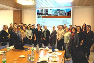 Zu Beginn begrüßte Sabine Seninger, Hebamme und Leiterin der Elternschule des St. Nikolaus-Stiftshospitals, die Teilnehmerinnen und präsentierte die Geburtshilfe am St. Nikolaus-Stiftshospital, inklusive der Arbeit im Kreißsaal, auf der Wochenstation, der Elternschule und der Hebammenambulanz. Gesprächsbedarf gab es anschließend genügend. „In den letzten 15 Jahren sind mehr als die Hälfte aller Kreißsäle in Rheinland-Pfalz geschlossen worden“, sagt Seninger. „Da ist es wichtig, dass man sich austauschen kann.“ Hervorgehoben wurde auch, wie wichtig den Hebammen eine 1:1-Betreuungsgarantie unter der Geburt für alle schwangeren Frauen ist. Dass ein Austausch unter den Hebammen wichtig ist, wurde von allen Teilnehmerinnen bestätigt. Und so werden künftig regelmäßig alle drei Monate Treffen stattfinden, dann jeweils zu einem speziellen Leitthema.