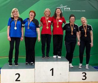Bei der Kategorie „Senioren-Doppel Ü50“ belegten Bettina Kriegel (DJK Andernach) und Anja Keller (Borussia Eckelsheim) den ersten Platz und waren damit deutsche Meisterinnen im Senioren-Doppel.