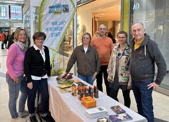 Anja Niemann, Ulrike Lihnsen, Sabine Hoffmann, Christoph Kohl, Luzie Strietholt und Hans-Georg Hansen (vlnr) kamen mit den Passanten über den fairen Handel ins Gespräch.