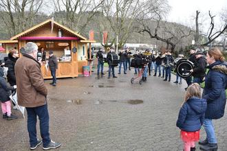 Zudem gab es sogar musikalische Unterstützung: Die No Name Gugge zog durch die Gassen und machte auch Station an der Kirmes in den Rheinanlagen. Denn immer wieder, wenn die Schauer nachließen, zog es dort die Familien mit ihren Kids hin. Sie gingen an die Buden oder drehten eine flotte Runde auf dem Kinderkarussell und dem krakenartigen Fahrgeschäft.