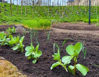 Die ersten Bohnenpflanzen wurden von Mitarbeitern der Perspektive gGmbH Andernach in die Beete der Essbaren Stadt gepflanzt.