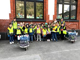 Kürzlich trafen Werner Weidmann und Felix Pollack von der Projektgruppe Pro R(h)einheit der Ehrenamtsinitiative Klimawerkstatt auf dem Schulhof der Grundschule Namedy ein. Voller Energie machten sich 26 Kinder des 1. und 2. Schuljahres auf den Weg und sammelten achtlos weggeworfenen Müll ein.