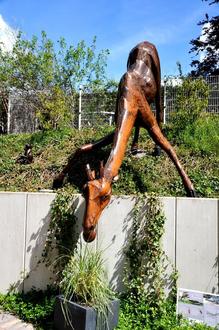 orbei am Klemenz Pompetzki kommt man dann zu Krokodil, Elefanten, einer Affenherde und Giraffen. Eine passt hier so hervorragend ins Gelände, als sei sie speziell für den Kunstfreund erschaffen worden. „Das war Liebe auf den ersten Blick“, lacht Ehl. Die Metallkunst der „Maridadi-Art“ ist in Kenia entstanden und wurde importiert. Eine beeindruckende Kulisse ist so entstanden.