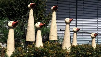 Glaskunst aus Königswinter ist mit Borowski schon länger heimisch geworden im Innenhof des Hotels und der Wohnanlage. Zahlreiche neue Tiere, vom Schwan bis zur Gänsefamilie, von Vogel bis Eule oder Käfer haben sich hinzugesellt. Auch sie entfalten ihre ganze Schönheit, wenn die Dämmerung kommt und sie sich beleuchtet hervortun.