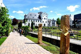 Die überaus liebevoll geschaffenen Außenanlagen präsentieren Stein- und Metallskulpturen und laden ein, sich mit den Werken zu beschäftigen.