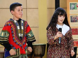 Eltern und Gäser der Grundschule wurden auf eine Reise in das ferne Afrika mit all seinen prächtigen Tieren, Farben und Klängen mitgenommen und verzaubert.