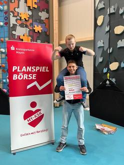 Im Rahmen des Wahlpflichtfaches Wirtschaft- und Verwaltung (WPF WuV) haben die Schülerinnen und Schüler der 9. Klasse der St. Thomas Realschule plus Andernach am jährlich ausgerichteten Wettbewerb Planspiel Börse der Sparkassen teilgenommen. Das Team „Waltuh“, bestehend aus Delano Wiß (9b) und Adrian Smoldyr (9b), darf sich in der Kategorie „Depotgesamtwert“ für den Geschäftsbereich der Kreissparkasse über einen 3. Platz freuen!