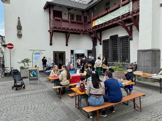 Besondere Leckerbissen waren beim Frühstück z. B. frisch gekochte Eier von den Lebenswelten der Permakultur in Eich. Unterstützt wurde die Aktion, die es so seit mehr als 10 Jahren in Andernach gibt, von Fairtrade Deutschland. Dieser gemeinnützige Verein hatte der Steuerungsgruppe „Frühstückboxen“ mit leckeren fairen Lebensmitteln zur Verfügung gestellt.