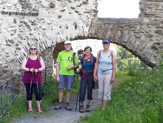 Oben entschädigte die fantastische Aussicht auf Monreal, das idyllische Elztal und die umliegenden Berge für die Anstrengungen des Aufstiegs. Nun kam nur noch der recht steile Abstieg hinunter in den Ort, und die Schlusseinkehr, das "Restaurant Löwenburg", war erreicht. Im schattigen Biergarten des Lokals fand hier bei einem wohlverdienten schmackhaften Essen und erfrischenden Getränken der gemütliche Ausklang dieser erlebnisreichen Wanderung statt.