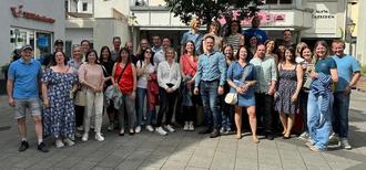 Rund 40 ehemalige Salentiner und Salentinerinnen des letzten ABI-Jahrgangs vor der Jahrtausendwende trafen sich am 8. Juni 2024 zum 25-jährigen Jubiläum in Andernach. Unter dem Motto „AB Ins nächste Jahrtausend“ wurde damals das Ende der Schulzeit gefeiert. Seitdem war nun ein Vierteljahrhundert vergangen und einige hatten sich tatsächlich 25 Jahre nicht mehr gesehen. Teile des Jahrgangs wohnen immer noch oder wieder heimatnah, viele sind deutschlandweit verteilt und einige reisten sogar aus Kapstadt, Paris oder Wien in die schöne Bäckerjungenstadt, um ihre ehemaligen Mitschülerinnen und Mitschüler wiederzutreffen. Nach einem Sektempfang „Auf’m Hügelchen“ ging es am späten Nachmittag mit zwei engagierten Stadtführern durch die Altstadt. Anschließend ging es zum gemütlichen Teil in die Schloßschänke. Die Lautstärke im Gastraum zeugte schnell davon, dass es viel zu erzählen gab. Nur zum Essen wurde es vielleicht ein wenig leiser, bevor dann die Abi-Band „Abikackt“ wieder einen ihrer legendären Auftritte ablieferte. Die Playlist ist seit 1999 bewährt und unverändert. Trotz einer nur kurzfristigen Probe überzeugte die Boy-Band von damals auch mit leicht angegrauten Schläfen wieder. Eine besondere Überraschung war auch, dass sich der amtierende Oberbürgermeister Christian Greiner mit seiner Frau Anna dazu gesellte. Als Absolvent des KSG ein Jahr später war er dem Jahrgang von 1999 schon immer auf den Fersen. Es war ein rundum gelungener Tag und vor allem Abend. Das Logbuch der MSS Abiprise ist um ein denkwürdiges Ereignis reicher. Ein besonderer Dank gilt der Organisatorin Simone Wenning. Eine baldige Wiederholung wurde schon beschlossen.