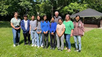 Von links nach rechts: Julia Dormayer/ Geschäftsführerin der vhs Andernach, Schüler*innen aus Myanmar, Rainer Bernhardt/ Myanmar-Partner e.V., Kerstin Röder/ Dozentin