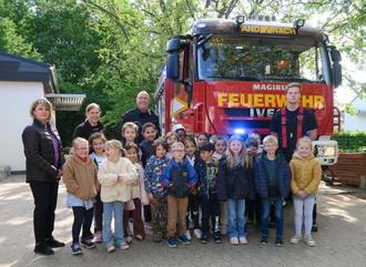 Abschließend durften die Kinder noch das Feuerwehrauto und das Equipment besichtigen.