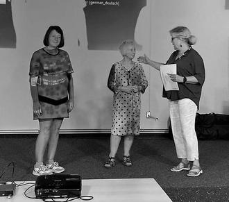 Sigrid Schug verabschiedet Gabriele Specht-Birlem und Carmen Rakemann (von rechts nach links)