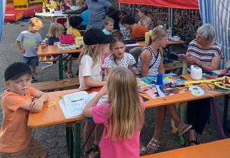 Erstaunlich viele junge Familien mit Kindern hatten den Weg zur Nachbarschaft gefunden. Die große Hüpfburg, vom DLRG zur Verfügung gestellt, zog die Kinder wie ein Magnet an, ebenso die Möglichkeit, von Rita Krupp geschminkt zu werden.