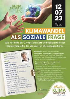 Er wird einen Informationsvortrag zum Thema „Klimawandel als soziale Frage“ halten. Im Anschluss steht eine Podiumsdiskussion unter der Leitung Bürgermeister Claus Peitz an, an der Prof. Dr. Gerhard Kruip, Oberbürgermeister Christian Greiner, Klimaschutzmanagerin Mona Maar und Abri Ali, Vorsitzende des Beirats für Migration und Integration, teilnehmen.