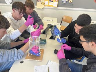Die Schüler des BVS bei der Arbeit mit dem mobilen Genlabor.