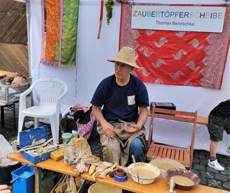 Selbst erleben wie die Menschen in früheren Zeiten Gefäße getöpfert haben - Das konnten am vergangenen Sonntag im Rahmen von „Andernach schmeckt!“ zahlreiche Besucherinnen und Besucher des Andernacher Stadtmuseums, als es hieß: Vorhang frei für Thomas Benirschke mit seiner „Zaubertöpferscheibe“!