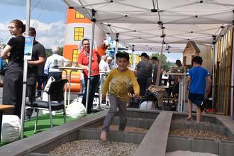 Bei einem Barfußpfad konnten Kinder ausprobieren, wie sich verschiedene Gesteinsarten anfühlen, beziehungsweise die Schüttgüter, die von Andernach aus verschifft werden.
