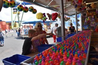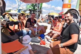 Dafür sorgte etwa die musikalische Unterhaltung durch DJ Stephan Dilly und die Launch-Chilll-Out-Area: In der Nähe des Containerterminals lockten Sand mit Liegestühlen und Sonnenschirmen zum Entspannen. Zudem gab es sehr viele Offerten für jüngere und ältere Kids, angefangen vom Kinderkarussell über Entenangeln und einer Hüpfburg bis hin zum „Bull-Riding“ auf einem Fisch oder einen großen aufblasbaren Leuchtturm zum Bouldern und Klettern.