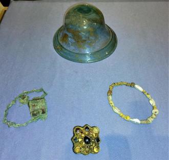 Beigaben aus einem Frauengrab des 7. Jahrhunderts (Gräberfeld Landsegnung/St. Peter).