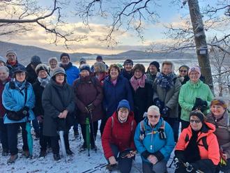 Bei leichtem Schneefall trafen sich 38 Wanderer und Wanderinnen schon am frühen Silvestermorgen 2025 zur Jahresabschlusswanderung nach Maria Laach. Der Bus brachte die Wandergruppe durch die schöne Winterlandschaft des Brohltals bis zum Parkplatz „Waldfrieden“ am Laacher See. Hier startete die Wanderung bei winterlichen Temperaturen und auf dünn verschneiten Wegen rund um den Laacher See. Erst ging es etwas bergab, dann auf gut begehbaren Wegen, und immer mit Blick auf den leicht zugefrorenen See und das Kloster Maria Laach. Am Ende der Wanderung kehrten alle zum Mittagessen in der „Klosterschenke“ Maria Laach ein.