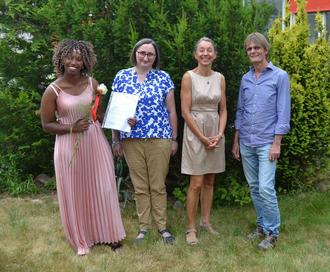 (Von links) Miseret Kebede gaben Caritas-Mitarbeiterin Steffi Nöthen, Dienststellenleiterin Margret Marxen-Ney und Stefan Kohlhage vom FAiR+ Projekt die besten Wünsche mit auf den Weg.