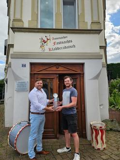 Martin Barczik überreicht die Karaffe an das Museum, vertreten durch Florian Jüngerich