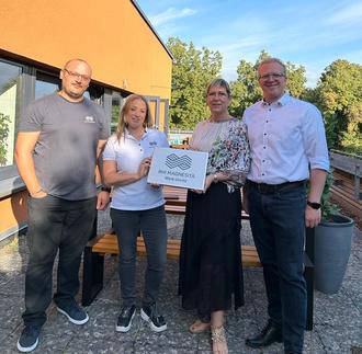 Ein besonderer Dank geht hier an die Firma RHI Magnesita aus Urmitz: Stellvertretend für diese übergaben Frau Alena Töws und Herr Hatoum 15 Laptops und 15 Rechner an Frau Vicky Plitt und Herrn Florian Pieper.