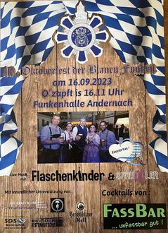 ANDERNACH. „Wir „Blaue Funken“ freuen uns, das mittlerweile 10. Oktoberfest auszurichten zu dürfen. Die bisherigen Erwartungen wurden jedes Mal übertroffen und hoffen, dieses Jahr mit den Flaschenkindern eine Schippe drauf zu legen und somit das 10-jährige Bestehen mit euch zu feiern. Die Vorbereitungen laufen auf Hochtouren, um euch nach gewohnter Funkenmanier zu unterhalten. Seither freuen wir uns über die positive Resonanz, die uns entgegengebracht wurde und tun unser Möglichstes, um unsere Gäste mit deftigen Speisen und kühlen Getränken bestens zu bewirten.