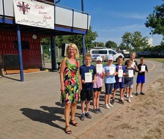 Sofia H., Lilly H. (gleichzeitig Stufenbeste, beide 5d). Anschließend erhielten alle Jungen und Mädchen ihre Teilnahme- und Siegerurkunden aus den Händen ihrer Klassenleiterinnen.