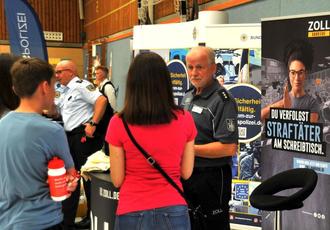 Hier wird das Interesse der Schülerinnen und Schüler gebündelt und diese können sich gezielt und intensiv unterhalten und informieren. Wer sich hier im Vorfeld seine Lieblingsthemen rausgesucht hatte, fand trotz des großen Andrangs auf der Messe ausreichend Möglichkeit, in den Dialog zu kommen.