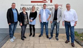 Von links: Frank Löhr, Anna Jost und Diana Petrek (Altenzentrum Sankt Stephan) Sebastian Theisen und Dieter Köhne (Anglerverein Kretz 1963 e. V.) Bodo Sorger (Geschäftsführer Altenzentrum-Sankt-Stephan-Stiftung) freuen sich über die Spende für die Veranstaltungen der Andernacher Einrichtung.