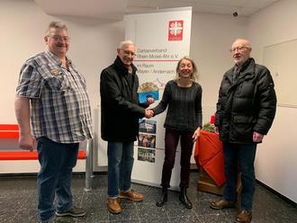 Der Wohnungslosenhilfe überreichten die Häcker 60Plus – (von links) Michael Seebert, Klaus König und Gerhard Jungblut – einen Scheck in Höhe von 300 Euro, den Dienststellenleiterin Margret Marxen-Ney, Caritas Andernach, dankbar entgegennahm.