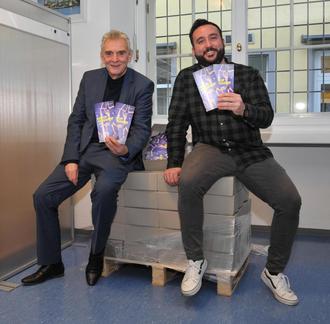 Bürgermeister Claus Peitz (links) und der stellvertretende Kulturamtsleiter Hannes Mager freuen sich über die frisch angelieferten Kulturprogrammbroschüren, die ab sofort kostenlos erhältlich sind.