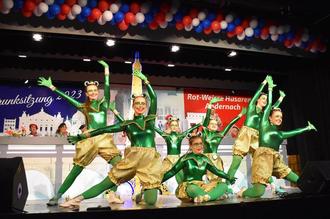 In puncto Präsenz auf der Bühne und tänzerischem Können ist Kindersolomarie Kim Riedel anzumerken gewesen, dass sie am Tanztraining und schnellen Schrittfolgen viel Freude hat. Nicht nur Sitzungspräsident Michael Steil ist voll des Lobes für sie gewesen. Er ließ durchblicken, dass sie bei den Husaren demnächst noch ein höheres „Tanzamt“ übernehmen könnte.